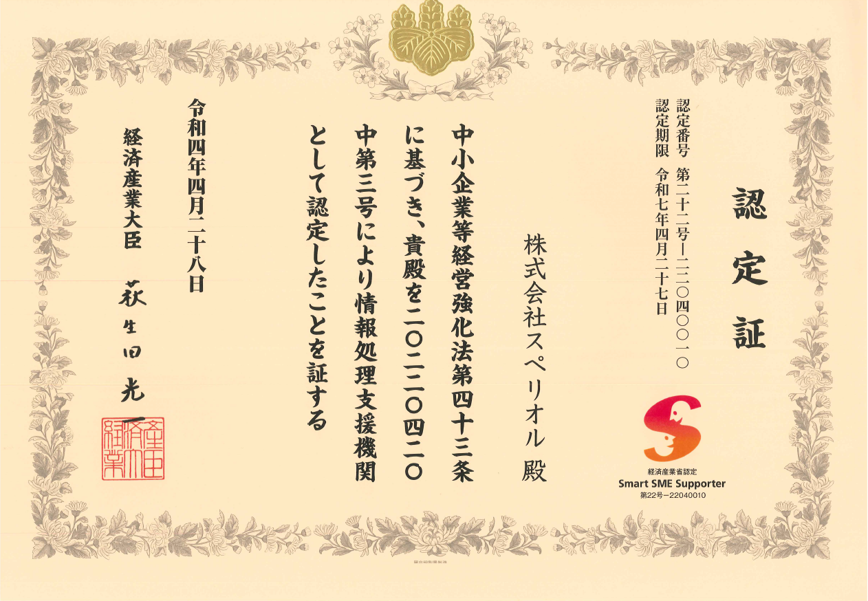 経済産業省より情報処理支援機関として認定されました。